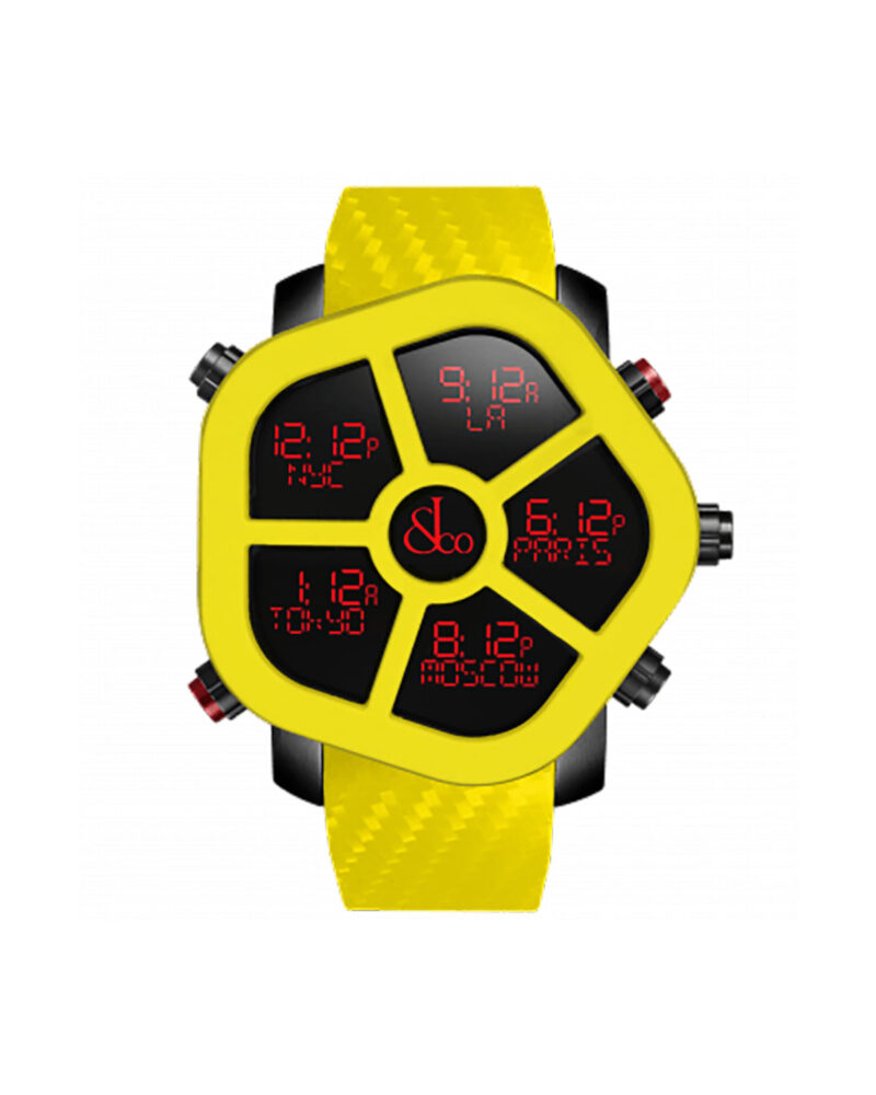 Echoing the iconic Five Time Zone watch that made Jacob and Co. famous in the world of watches, the Ghost reinterprets the Five Time Zone timepiece with quartz precision and a digital LCD display.